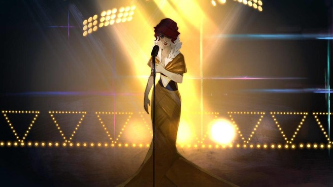 外面站的却是一个穿着红色开背连衣裙的女人 。